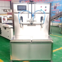 TLCG系列电子称重式液体灌装机,是我厂自主开发与生产的一种,专门适合液体大包装的灌装机械。本设备不同与其他定量灌装设备,采用先进的电子称重的方式进行定量,因此大大提高了灌装的精度与速度。另外,机身内外大部分零件采用优质不锈钢制造,既耐用又卫生,长时间工作性能可靠稳定。