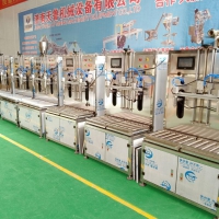 TLCG系列电子称重式液体灌装机,是我厂自主开发与生产的一种,专门适合液体大包装的灌装机械。本设备不同与其他定量灌装设备,采用先进的电子称重的方式进行定量,因此大大提高了灌装的精度与速度。另外,机身内外大部分零件采用优质不锈钢制造,既耐用又卫生,长时间工作性能可靠稳定。