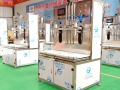 TLCG系列电子称重式液体灌装机,是我厂自主开发与生产的一种,专门适合液体大包装的灌装机械。本设备不同与其他定量灌装设备,采用先进的电子称重的方式进行定量,因此大大提高了灌装的精度与速度。另外,机身内外大部分零件采用优质不锈钢制造,既耐用又卫生,长时间工作性能可靠稳定。